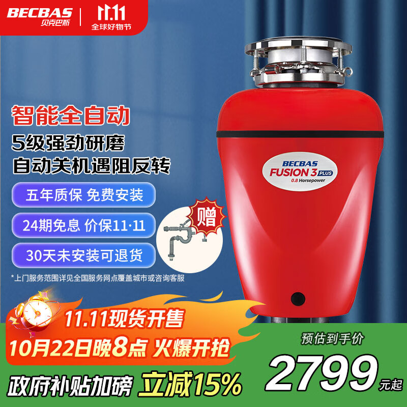 贝克巴斯(BECBAS)家用智能垃圾处理器厨余粉碎机自动关机F3PLUS