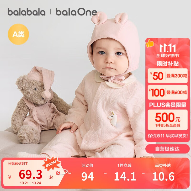 巴拉巴拉婴儿连体衣新生儿满月爬服2025冬夹棉加厚萌宝宝衣服208425133201
