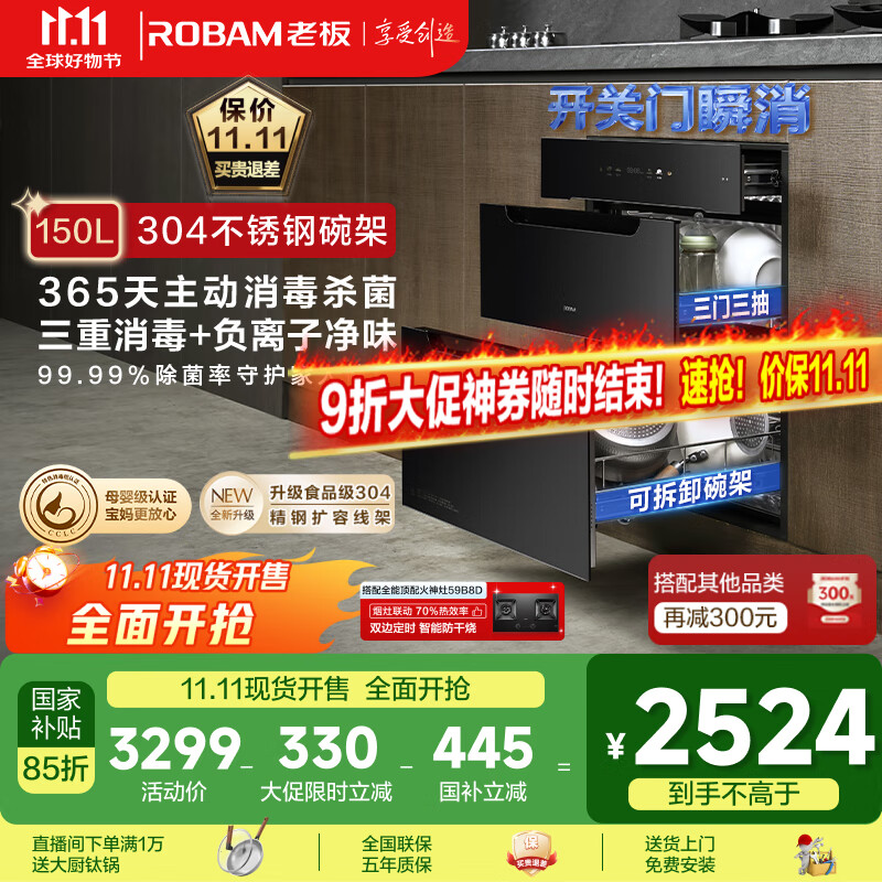 老板(Robam)150L恒净舱三层大容量消毒碗柜嵌入式家用一键托管全年紫外电热杀菌甲流母婴烘干机D2P国家补贴
