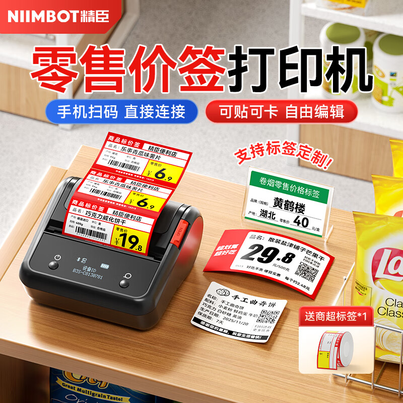 精臣B1/B3S/B4超市价格智能标签打印机服装超市珠宝药店商超商品二维码条形码不干胶贴纸打标机手持 B3S(机器+赠70*38红商超卡贴标签)