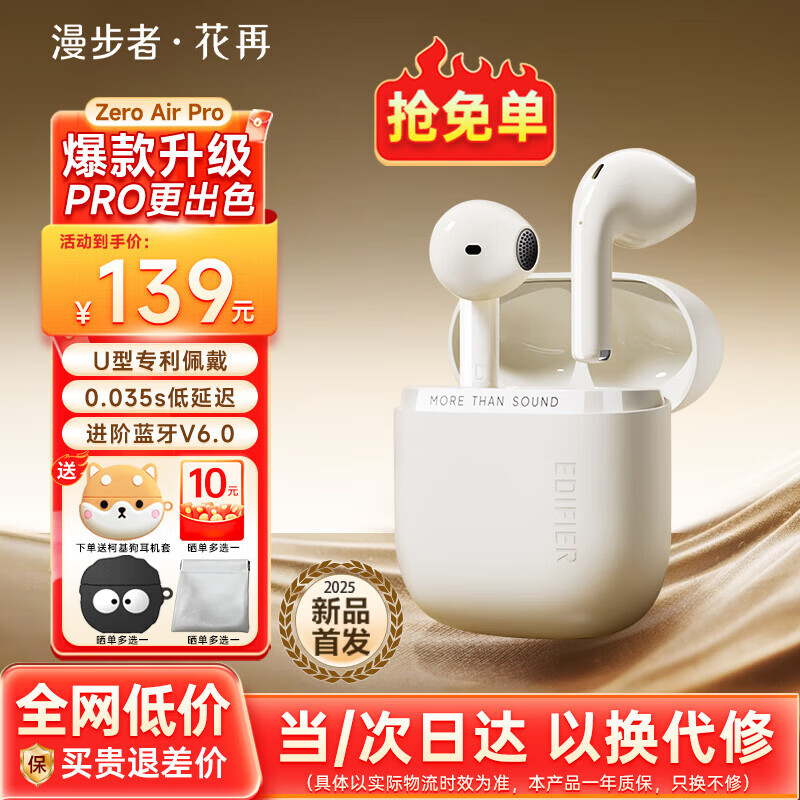 漫步者(EDIFIER)花再Zero Air Pro蓝牙耳机真无线半入耳式降噪运动音乐电竞游戏新款耳麦耐用超长续航花在男女士 椰奶白+柯基狗耳机套+晒单10元