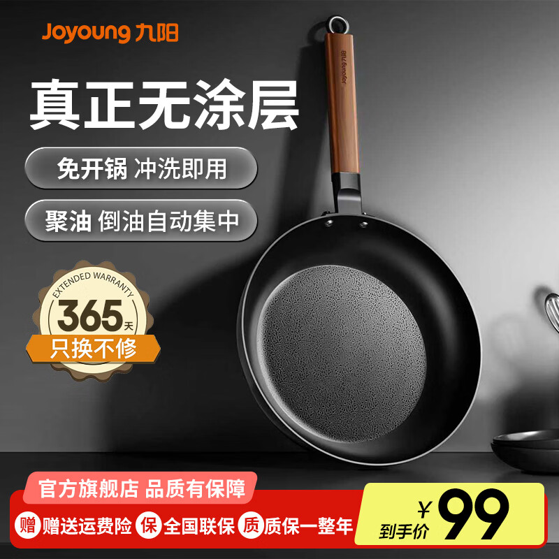 九阳平底锅煎锅无涂层铁锅煎蛋牛排烤盘早餐真不锈加厚家用燃气 聚油丨无涂层-CF190 28cm