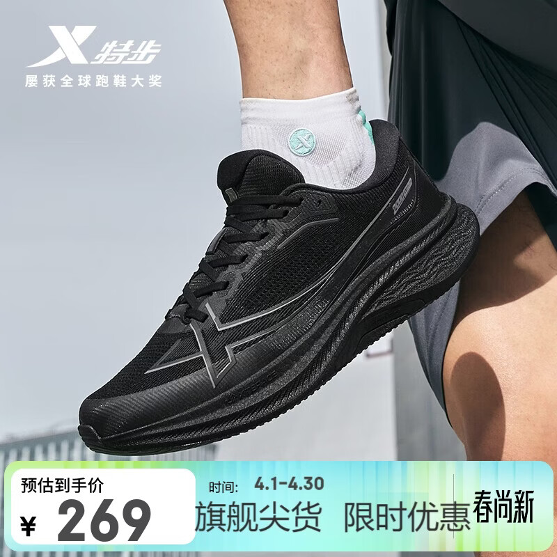特步两千公里PLUS男跑鞋运动鞋透气轻便减震稳定支撑大体重黑色跑步鞋