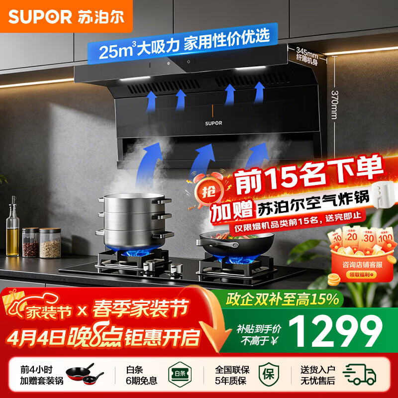 苏泊尔(SUPOR)顶侧双吸油烟机家用抽烟机厨房25m³爆炒大吸力智控烟机顶侧吸烟机PL11 【高性价单烟机】25m³顶侧双吸烟机PL11
