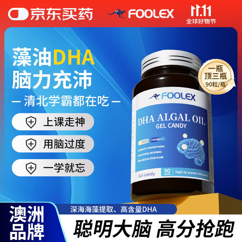 FOOLEX澳洲DHA成人深海藻油90粒高含量Ω-3青少年学生补脑记忆力胖东來