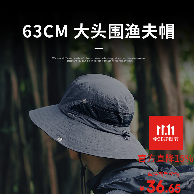 战术鸟(轻薄透气)大头围夏季户外渔夫帽男徒步登山防晒帽子女薄遮阳钓鱼