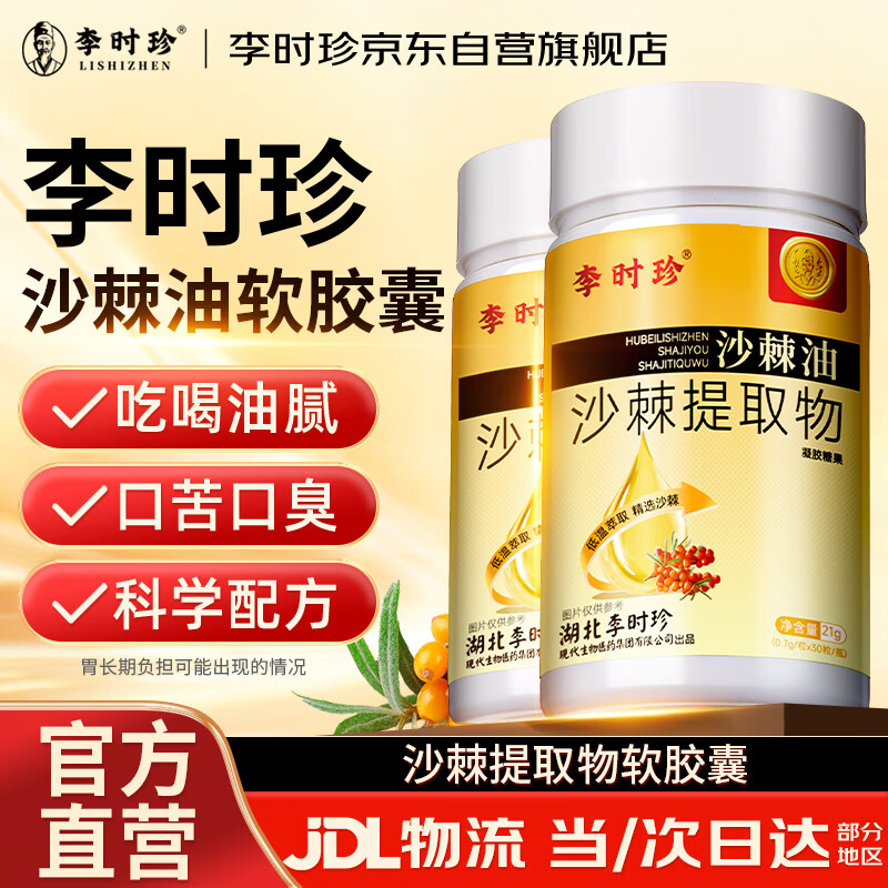 李时珍沙棘油沙棘提取物沙棘软胶囊2瓶60粒*0.7g正品