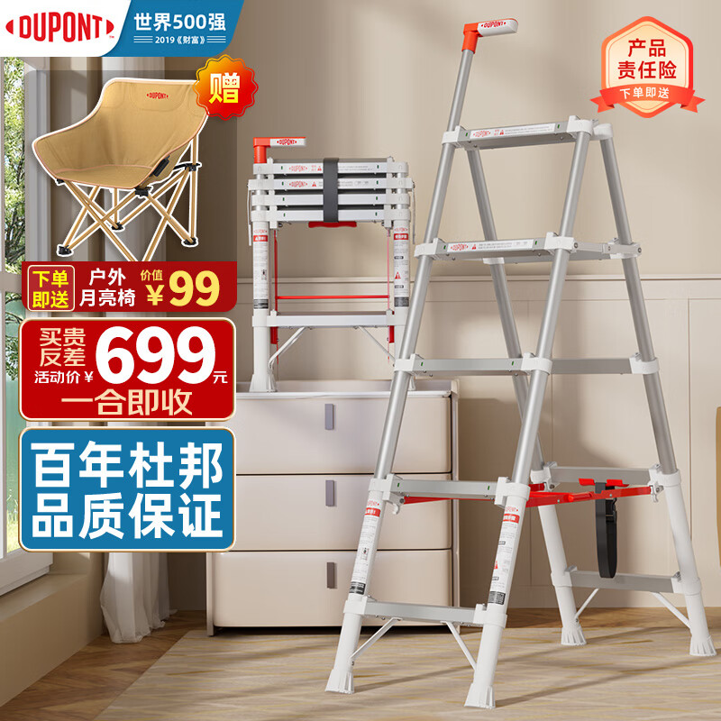 杜邦(DU PONT)【第2代小云梯】梯子家用人字伸缩梯折叠铝合金梯一合即收5步