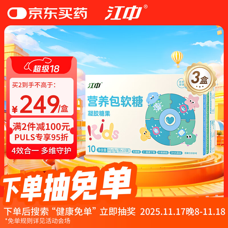 江中儿童每日营养包软糖3盒DHA藻油乳酸菌Y-氨基丁酸叶黄素酯成长记忆