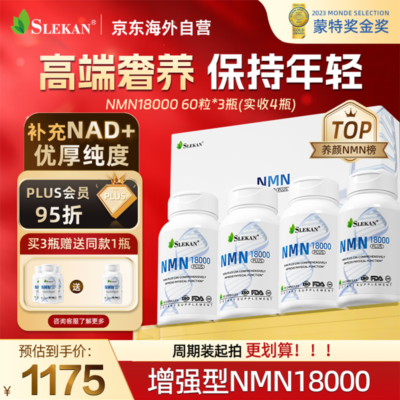SLEKAN强乐康NMN18000 原装进口β烟酰胺单核苷酸PQQnad+ 三盒调理装