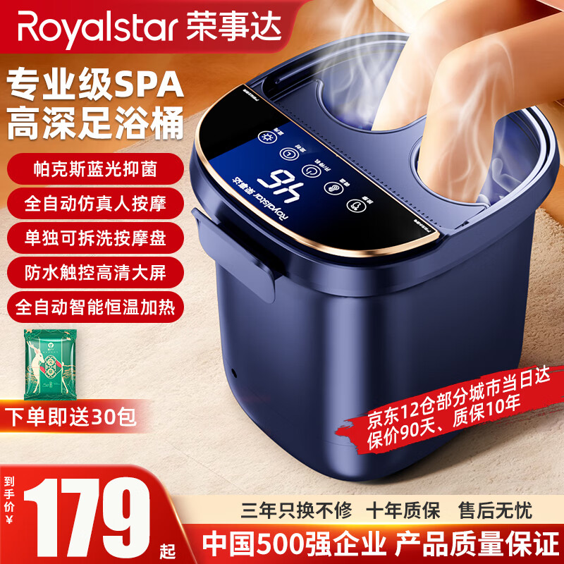 荣事达泡脚桶恒温加热自动按摩2025足浴盆泡脚洗脚盆足浴桶保温足疗桶智能过小腿泡脚按摩一体机新年礼物 数码显示【触控+可拆洗按摩盘+蓝光抑菌】 【2025全新升级118°躺泡】送老年人父母亲礼物