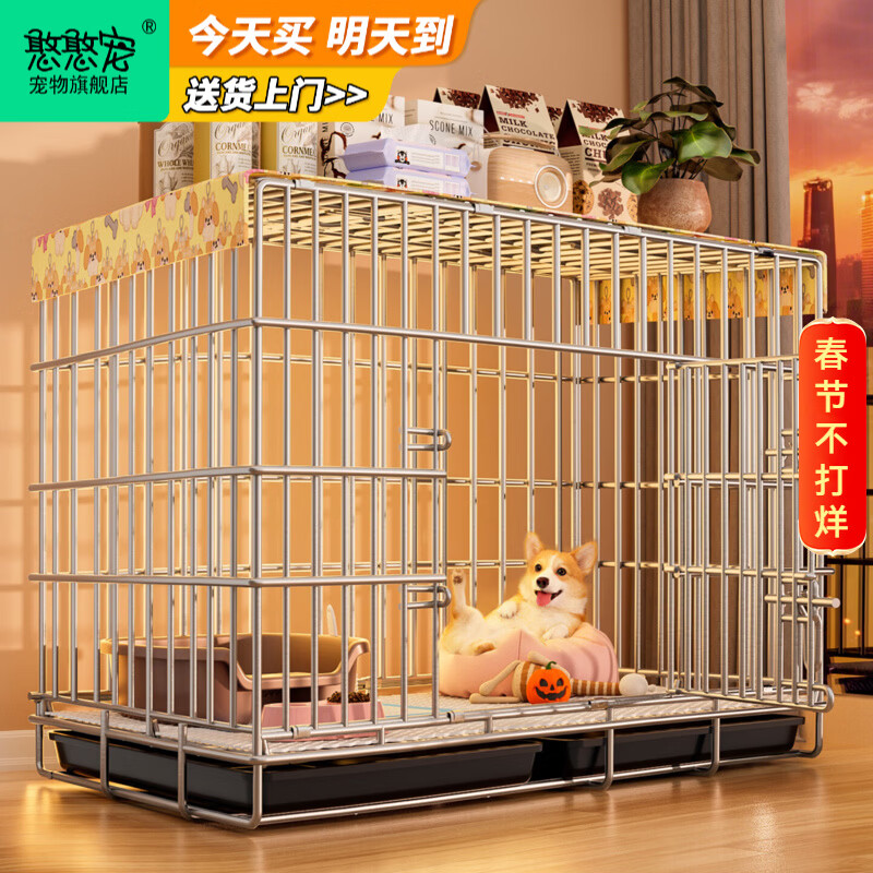 憨憨宠狗笼中小型犬狗笼子大猫笼带厕所加粗折叠宠物笼子柯基笼幼犬狗笼 加粗狗笼 银色 60*50*42cm 建议15斤内 带托盘式厕所+防卡脚垫片