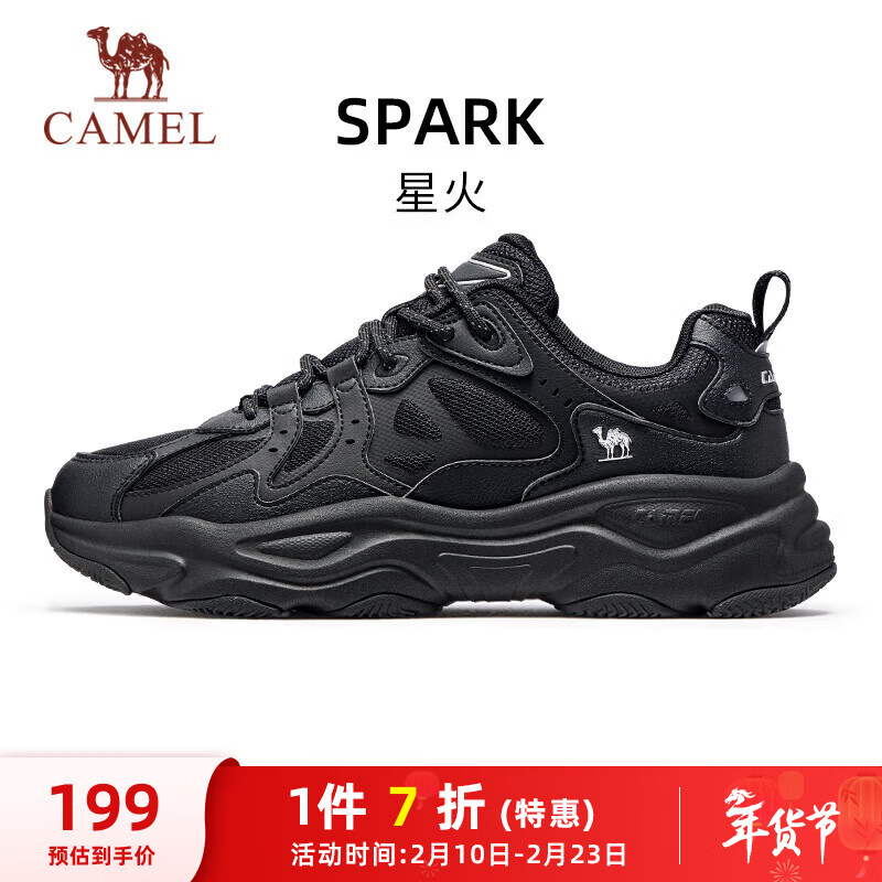 骆驼(CAMEL)男鞋厚底增高缓震老爹休闲运动鞋子 K15CX4L4018 黑/城堡灰 42