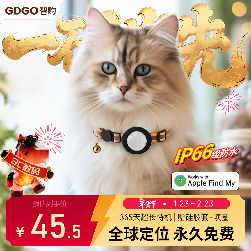 GDGO【苹果专用】定位器防丢平替适用Airtag猫咪狗狗宠物项圈牌定位神器防水tag防丢器含围脖MFi认证