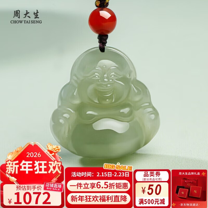 周大生【新年礼物】和田玉吊坠玉佛浅青玉吊坠女款中款送妈妈礼物
