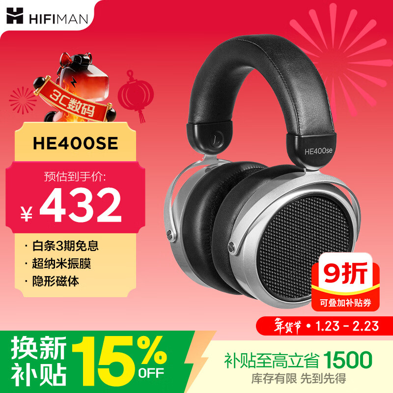 HIFIMAN(海菲曼)HE400SE 隐形磁体版 开放式平板振膜hifi发烧耳机头戴式有线音乐耳机