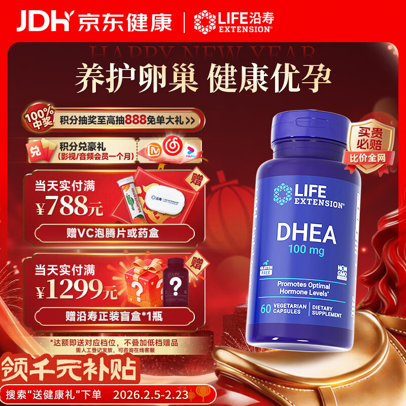 Life Extension沿寿DHEA美国进口100MG高含量脱氢表雄酮辅酶Q10大龄备孕组合