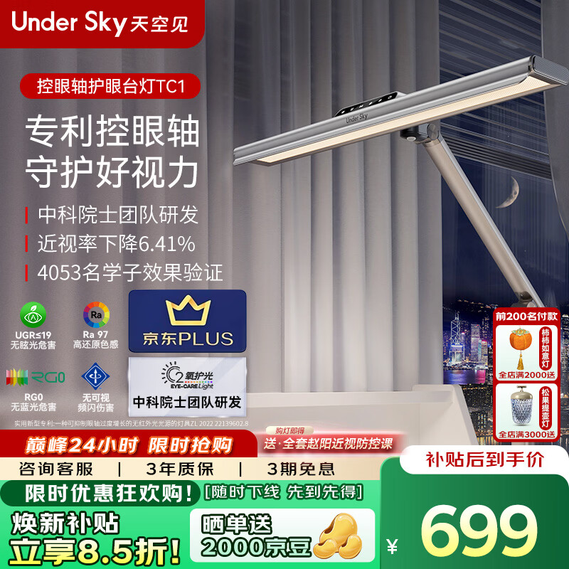 UNDER SKY 天空见【一价全包】控轴护眼学习全光谱人体感应屏幕灯台灯 TC1深空灰