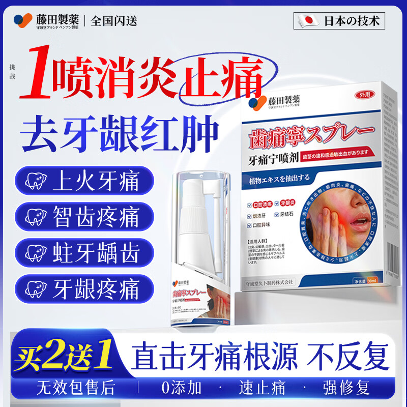 藤田制药牙痛宁喷雾剂快速消炎止痛药牙龈肿痛牙神经痛专治牙疼