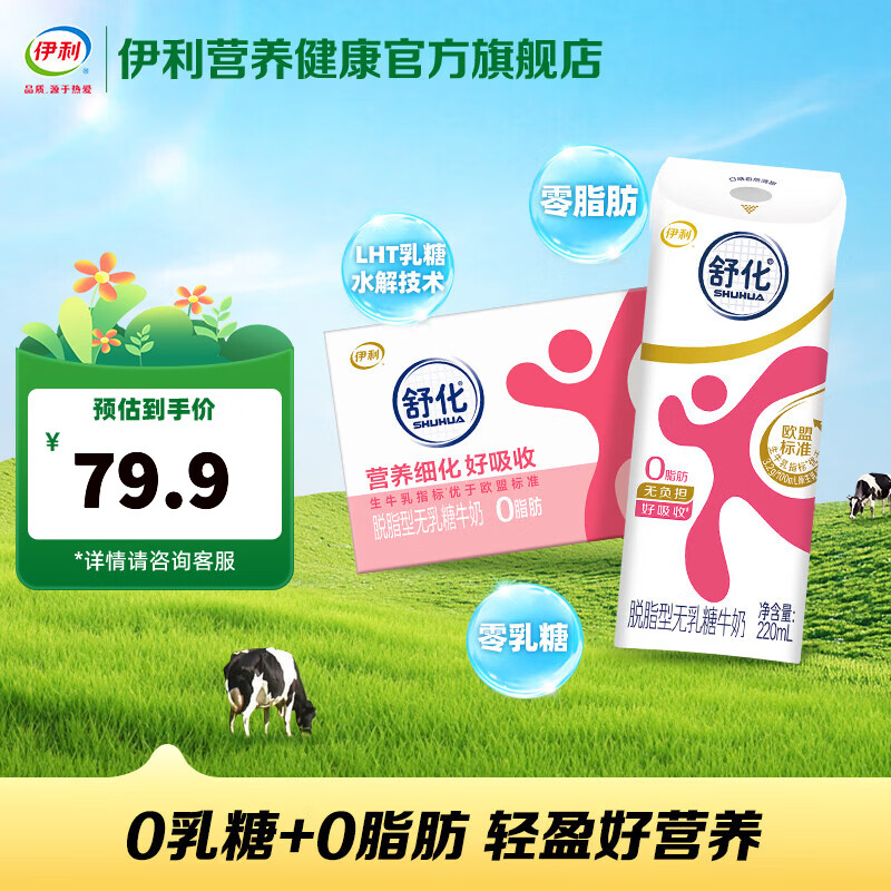 伊利舒化奶无乳糖牛奶脱脂型220ml*24盒/箱 零乳糖 礼盒装 2-3月产