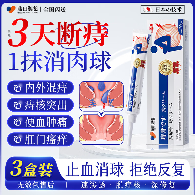 藤田制药痔疮膏去肉球内外混合痔疮专用卡波姆消痔凝胶栓肛门瘙痒非药3盒