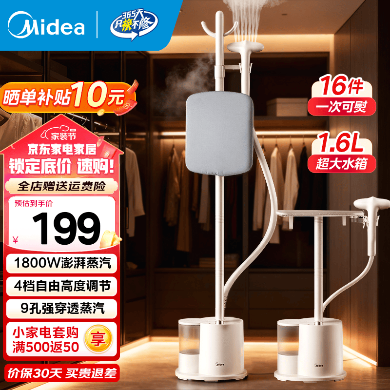 美的(Midea)挂烫机家用熨烫机 手持蒸汽熨烫机小型电熨斗除菌除螨熨衣机大功率衣帽架设计加大水箱熨斗机家用 【挂衣架设计|含烫板】YGJ18DB