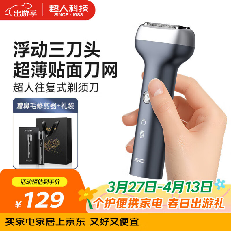 超人杭阳高端系列大功率电动剃须刀往复式小锤子全身水洗刮胡刀Type-c快充HS936