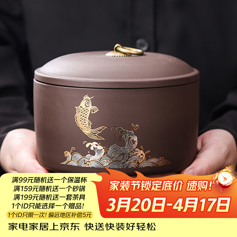 宅轻松紫砂茶叶罐白茶红茶普洱茶罐茶具配件家用办公茶叶密封罐年年有余