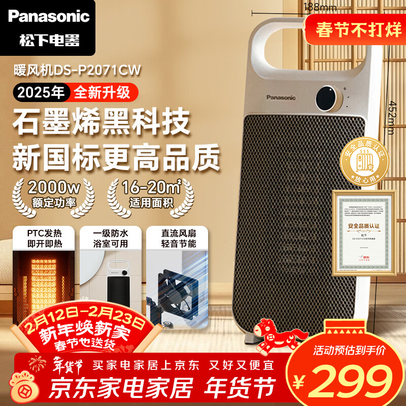 松下(Panasonic)石墨烯取暖器/暖风机家用立式热风电暖器桌面电暖气简约操控直流轻音电机PTC即开即热DS-P2071CW