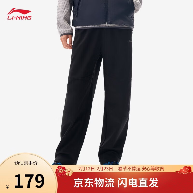 李宁防泼水运动裤男子春秋时尚百搭直筒软壳长裤AYKV729