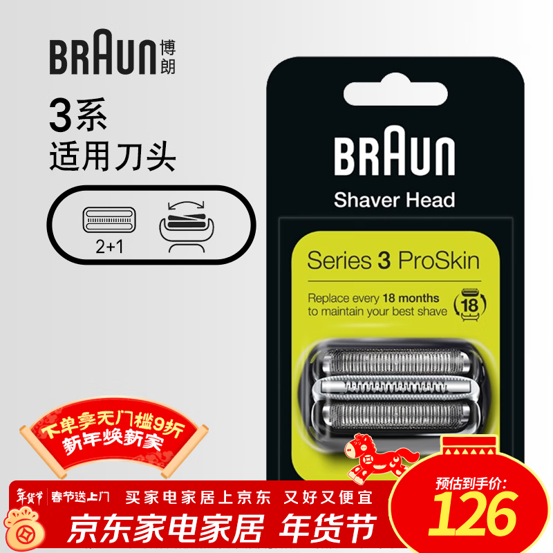 博朗(BRAUN)电动剃须刀配件3系32B刀头网膜组合