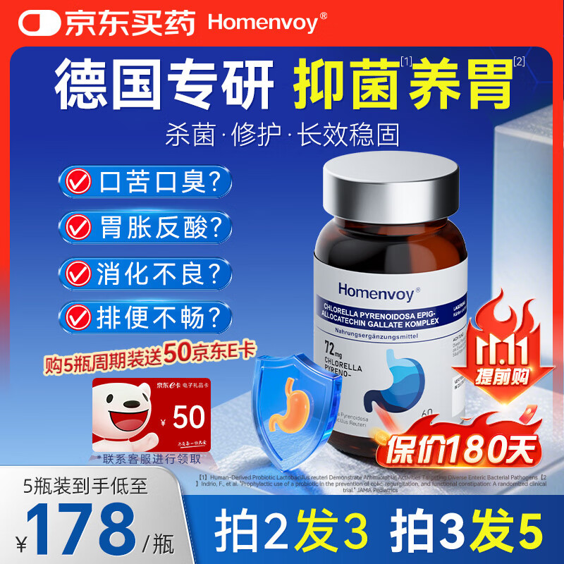 HOMENVOY德国进口罗伊氏乳杆菌益生菌搭幽门螺旋杆菌调理肠胃口臭口气便秘