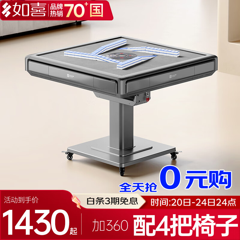 如喜【防侧翻旋风过山车免推牌】麻将机全自动折叠低音餐桌家两用一体 01旋风机Pro防侧翻天空灰