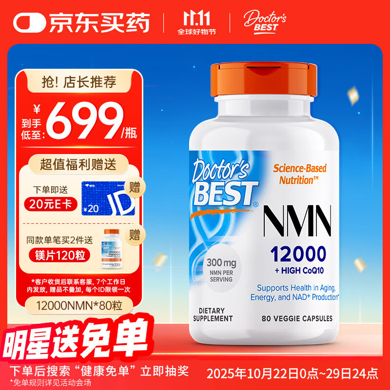 Doctor's best多特倍斯12000NMN β-烟酰胺单核苷酸胶囊复合型NAD+ 80粒 金达威