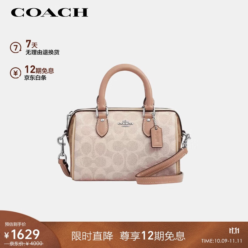 蔻驰(COACH)【品牌直供】女士ROWAN迷你手提单肩斜挎波士顿包豆沙粉色CW330