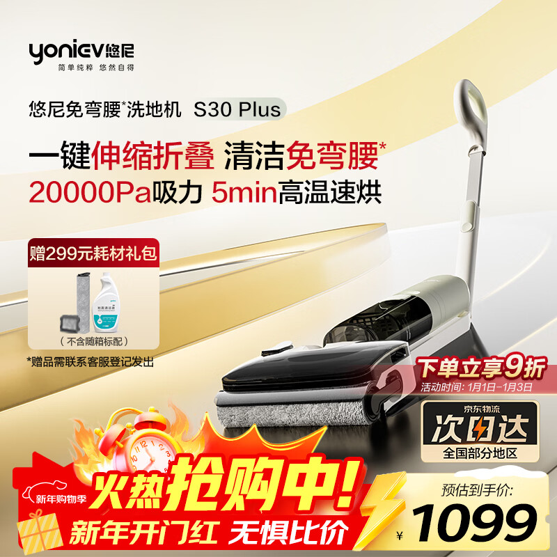 悠尼【0缝贴边】S30 Plus折叠躺平免弯腰洗地机高温全链速烘干无线扫地吸尘洗拖一体