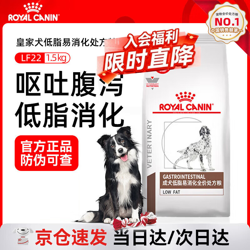 皇家处方狗粮LF22成犬低脂易消化全价处方粮狗粮胰腺炎处方罐头湿粮 1.5kg*1袋