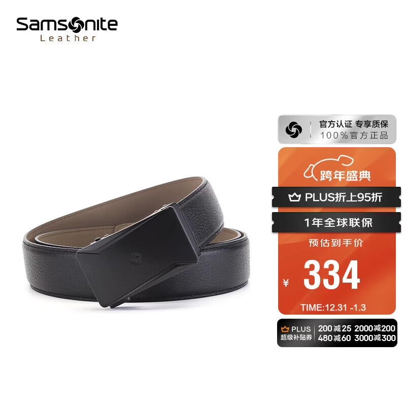 新秀丽(Samsonite)男士皮带腰带男高端商务自动扣牛皮皮带礼盒新年礼物TK2