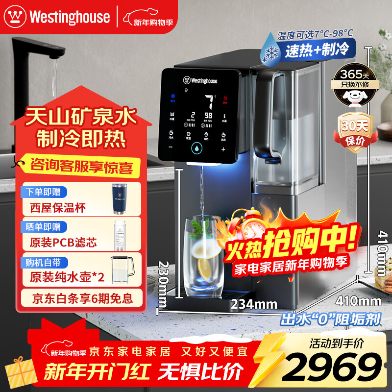 西屋(Westinghouse)弱碱性台式冷热净饮机 家用净水器 免安装RO反渗透 速冷即热直饮机 UV杀菌 7度制冷 F5s 年会采购