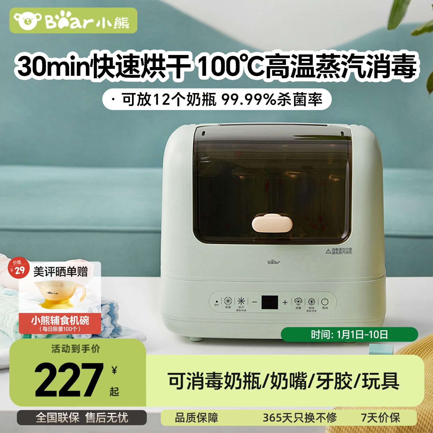 小熊(Bear)婴儿奶瓶消毒柜带烘干 多功能蒸汽消毒柜99.99%杀菌率保洁收纳柜