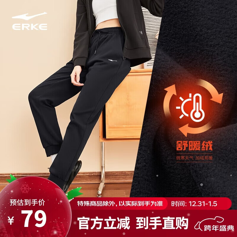 鸿星尔克运动裤女秋冬季加厚保暖休闲裤运动针织长裤百搭束脚防风女裤