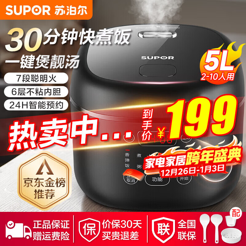 苏泊尔(SUPOR)电饭煲家用电饭锅大容量多功能煲汤快煮饭智能预约微压煮粥6层不粘内胆煮饭锅热饭 SF50FC0063 5L