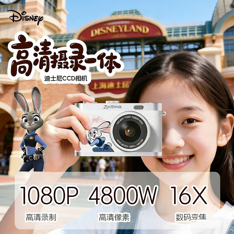 迪士尼(Disney)疯狂动物城ccd高清数码照相机彩色录像便携儿童学生新年礼物朱迪