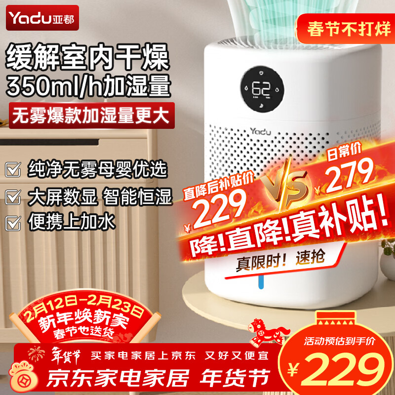 亚都(YADU)无雾加湿器卧室/婴儿纯净型家用办公室桌面冷蒸发恒湿数显/净化空气上加水SZ300-TJK302年会礼品