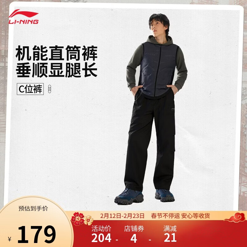 李宁运动长裤男子健身系列防泼水厚款直筒运动长裤AYKVC51