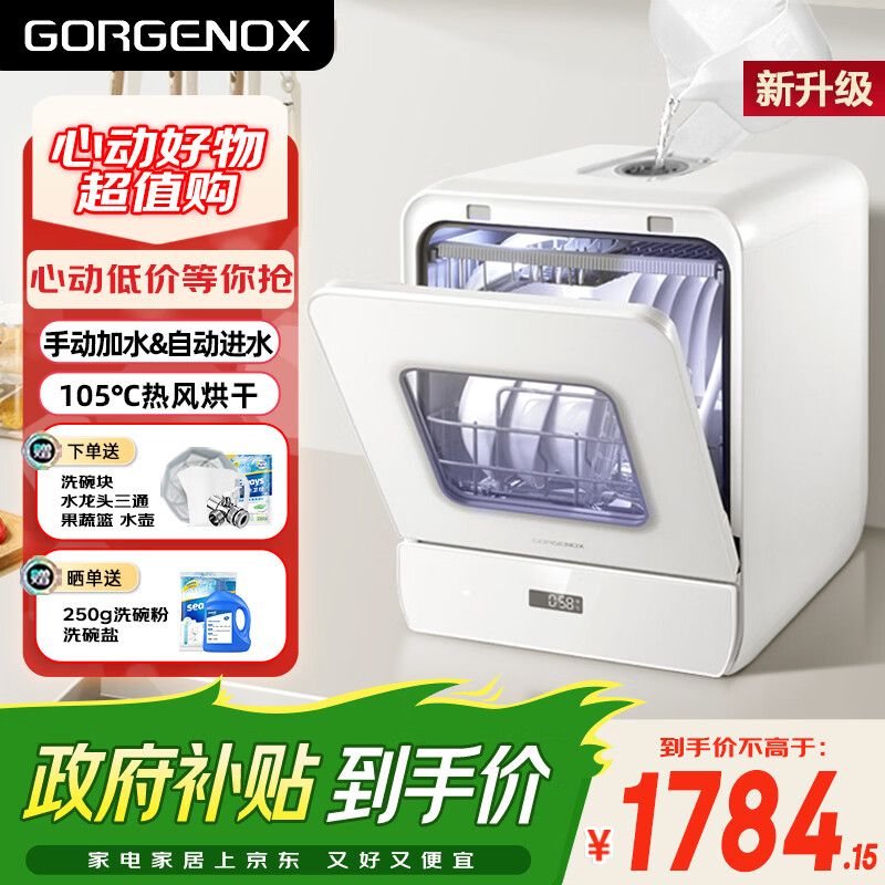 GORGENOX歌嘉诺5套免安装洗碗机台式小户型热风烘干uv除菌婴护果蔬洗家用超窄洗碗机可洗锅 白色(新升级软水系统)