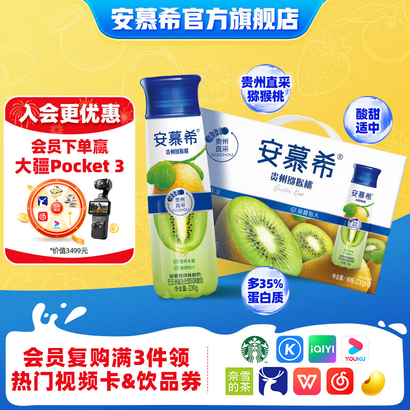 伊利安慕希贵州猕猴桃优质果酱风味酸奶整箱牛奶乳品早餐礼盒装 3月产 猕猴桃味230gx10瓶x1箱