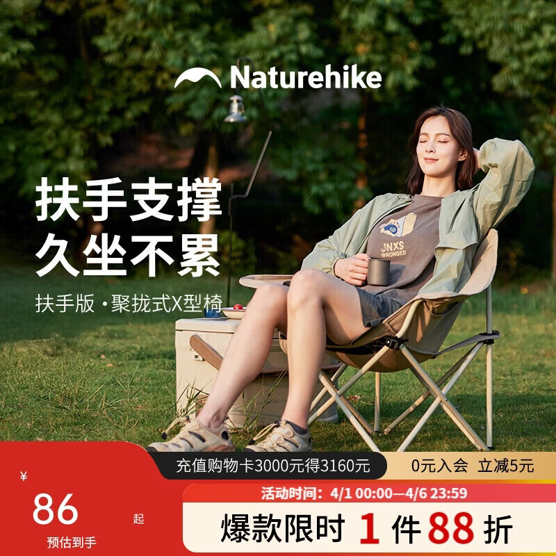 Naturehike挪客星月T01聚拢式X型折叠扶手月亮椅户外懒人导游椅 砂岩色