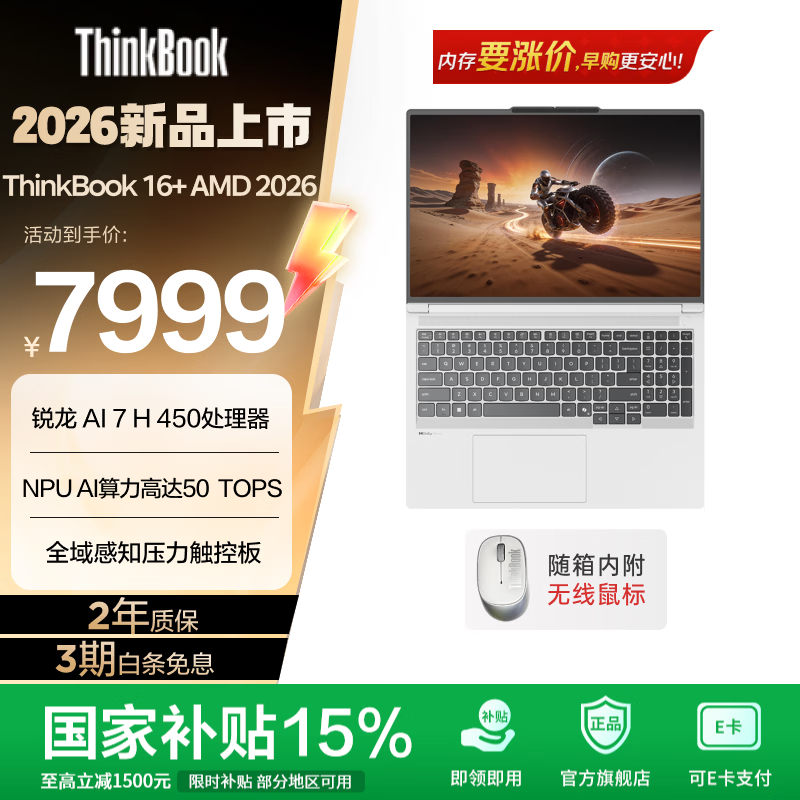 ThinkPad联想ThinkBook16+笔记本电脑AI全能本 2026新品 星耀白 全新锐龙7 H450 32G 1T