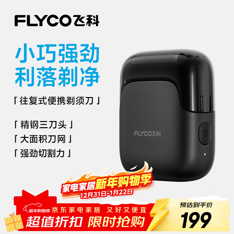 飞科(FLYCO)男士剃须刀电动刮胡刀往复式便携3刀头出行必备新年生日礼物送男生好友送父亲爸爸FS685天际黑